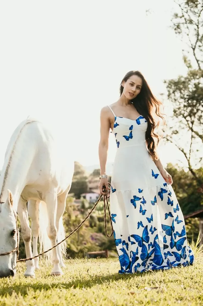 Com estampa exclusiva de borboletas em degradê azul sobre fundo branco, ele simboliza transformações, recomeços e aquela liberdade bonita de ser quem se é.